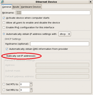 -Double-click yang diberi border biru, maka akan tampil menu seperti berikut ini. Pesan yang diberi lingkaran adalah pesan untuk men-setting IP menjadi IP statis dengan menggunakan tampilan GUI.